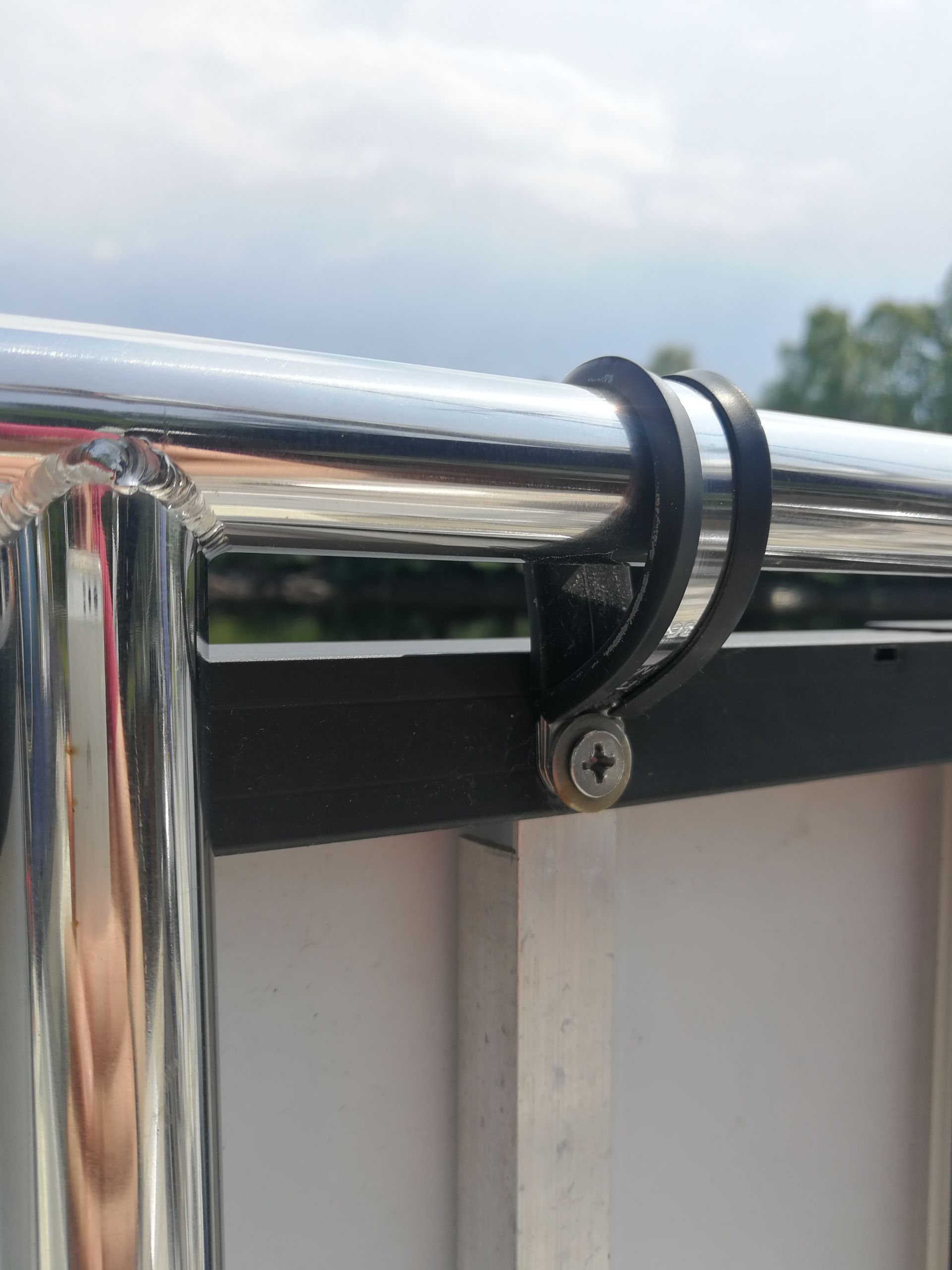 Here some photos on how I've hung the panels to the side of the boat. I used a stainless clamp with a rubber inlay. Down at the bottom I've used a simple plastic clamp with an aluminum nail in the aluminum frame. These two panels are connected in parallel on a Victron MPPT 75/15 solar charger. While writing this blog we are in cloudy Scotland and harvest somewhere between 130 and 350 watts a day. Which boils down to roughly 10 till 30Ah. In sunny conditions this will be higher of course. In the near future I'll make a tilting system for the panels, so I can point them at the sun more often.